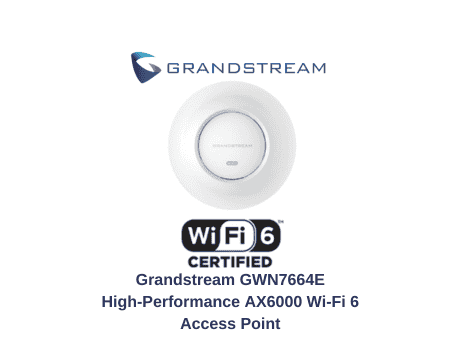 An excellent 802.11ax Wi-Fi 6 access point for small to medium-sized businesses, multi-story buildings, residential settings, and commercial venues is the GWN7664E. It provides dual-band 4×4:4 MU-MIMO with OFDMA technology and an advanced internal antenna design for increased Wi-Fi coverage range, greater anti-interference, and a more stable connection. It can handle up to 6Gbps of network throughput. Grandstream GWN7664E